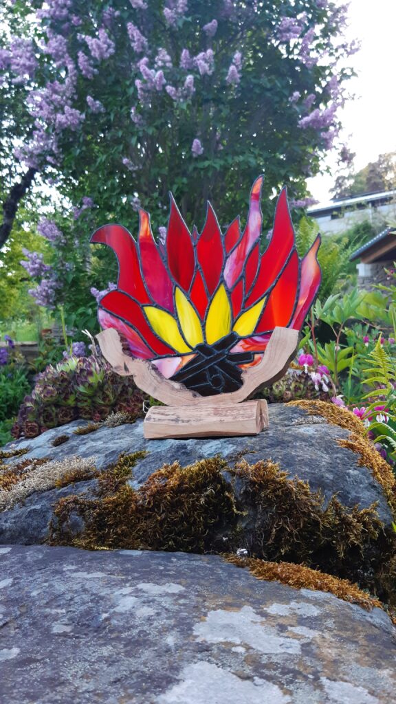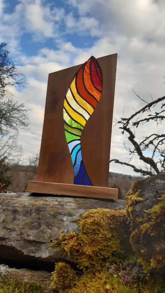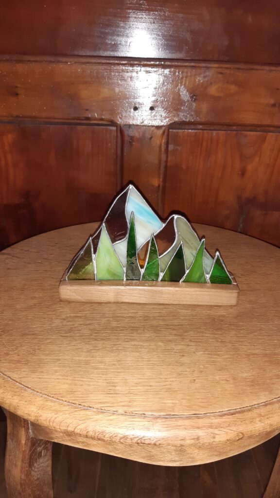Montagne en vitrail avec rétro-éclairage autonome rechargeable